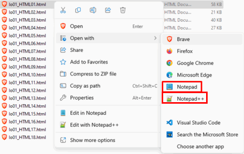 1-1 A 8 Opening an HTML file in Notepad++