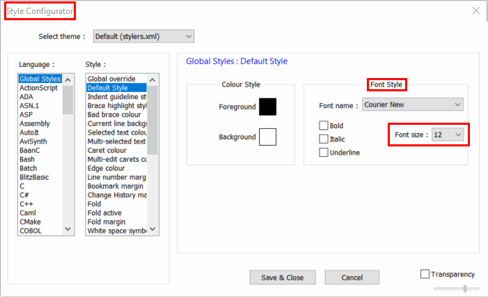 1-1 Explanation 4: Notepad++ settings III: Setting "Font size" to 12